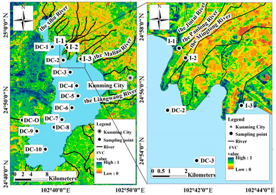 Location of Dianchi Lake in Yunnan Plateau and the sampling sites. FVC value: fractional vegetation cover value.
