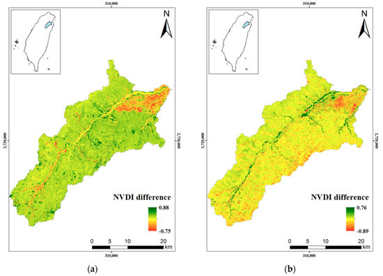 Normalized Difference Vegetation Index (NDVI) difference of the Lanyang River Basin.