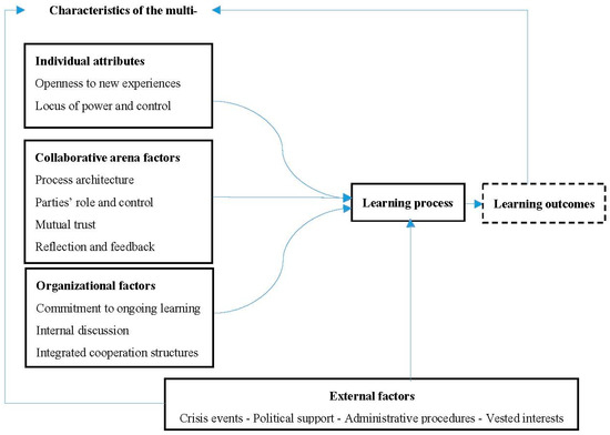By reviewing the abovementioned learning literature, we have found that most of the factors that will likely influence the learning process can be categorized into 4 categories—individual attributes, collaborative arena factors, organizational factors, and external context factors (see also [33]). Combined, these factors provide a framework that can be used to analyze learning processes (Figure 1).