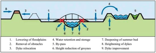 Measures applied to create more room for river in the Room for the River program. Adapted from [13].