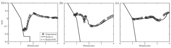 33]. Inevitably, the scale effect of the numerical model should be validated prior to its application. Moreover, as a disaster requirement, computational efficiency is considered an important indicator in the generation and propagation of landslide tsunamis, involving large calculation areas. Although uniform [