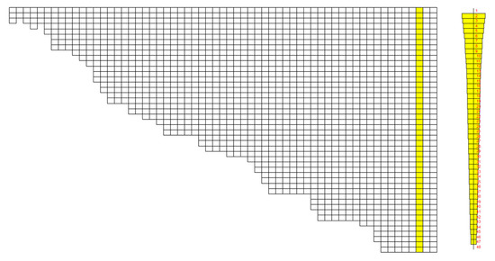 The Xuanwei Reservoir was represented as 63 longitudinal segments with lengths of 250 m and 48 vertical layers with thicknesses of 1 m according to the topographic data recorded in 2018. The CE-QUAL-W2 turbulence closure algorithm was used. There is only one inflow entrance upstream of the mainstream and there are no other inflow entrances from the tributaries. The boundary data was input with a daily resolution, including reservoir inflow and temperature, outflow, air temperature, wind speed and direction, solar radiation, cloud cover, precipitation, and evaporation. Reservoir grid model is shown in Figure 4.