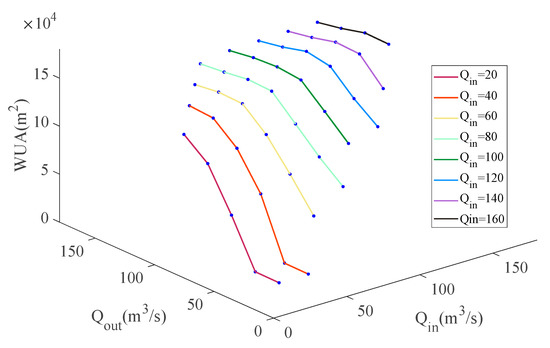 WUA (HSI > 0.6) under different inflow and outflow scenarios.
