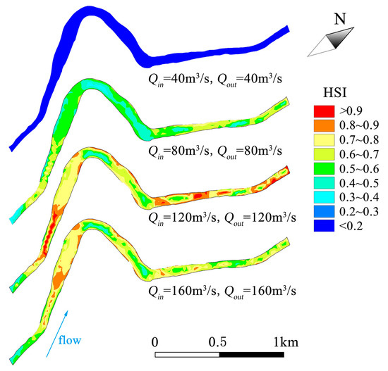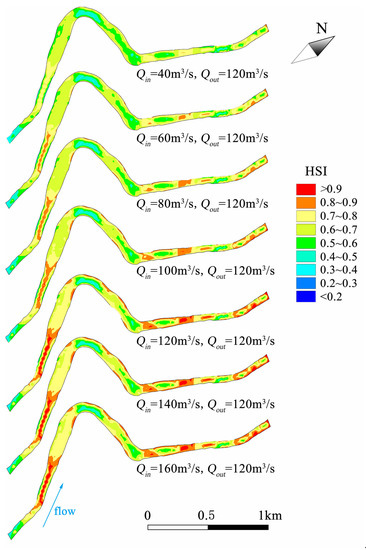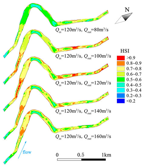 The spatial distribution of HSI under different inflow and outflow scenarios (inflow is equal to outflow).