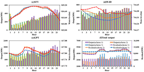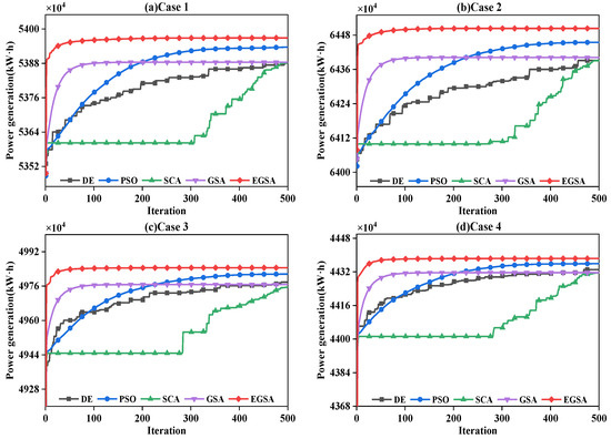 For almost all hydropower enterprises, the economic benefit is an important indicator of performance check under the market environment [71,72,73]. Generally, the same amount of available water resource can produce numerous scheduling schemes with different generation benefits. Hence, the first objective was chosen to find the best scheme that could maximize the total power generation of all hydropower reservoirs, which could be expressed as below: