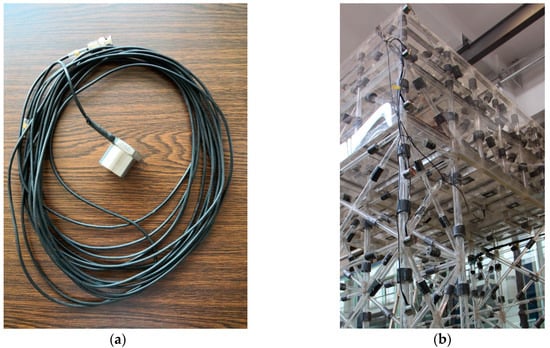 The experimental layout of acceleration sensors. (a) Acceleration sensor; (b) Acceleration sensors on the platform.