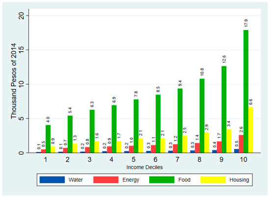 Household expenditure, selected categories. Source: Authors’ elaboration using data from ENIGH [25].