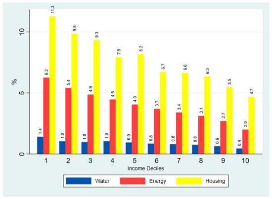 Expenditure in selected categories as percentage of household’s total income. Source: Authors’ elaboration using data from ENIGH [25].