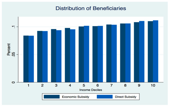 Distribution of subsidy beneficiaries by income decile, 2014. Source: own calculations with data from ENIGH [25]; and PIGOO [27].