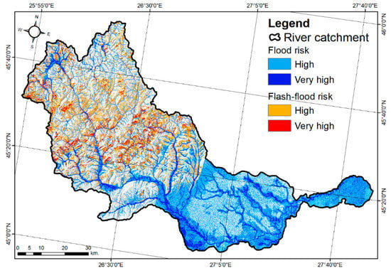 The methodology developed in this study has been applied on the Buzău river catchment, known in Romania as one of the most affected catchments by these types of natural hazards. The methods used can be applied at a national level or on different river catchments, considering the increase in intensity of the climatic events and anthropic activities which nevertheless have a direct impact on the generation of floods and flash-floods. The flood hazard assessment by correlating the parameters of various factors which hold a direct impact on the generation of floods and flash-floods, with forest changes, historical flood locations and areas affected by torrentiality, represents a vital tool in the management of river catchments and for local authorities in order to implement public policies to prevent these types of natural hazards and avoid any human or economic losses [,,].