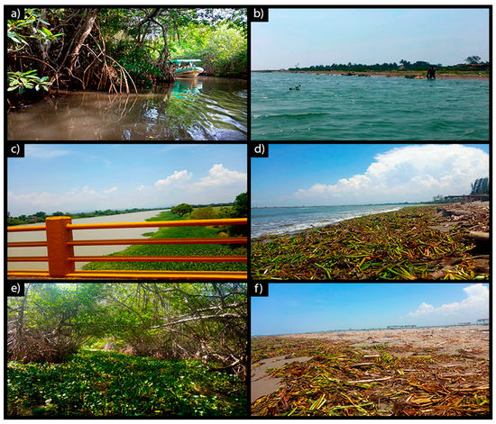 This research focused on two rivers of the state of Veracruz discharging into the Gulf of Mexico. The river mouths are located within Costa Esmeralda, a tourist destination with low and medium density tourism [34]. Most of the communities in the studied areas are marginalized, with a high percentage of the population living in poverty [35]. The inhabitants are mainly engaged in fishing, agriculture or tourism.