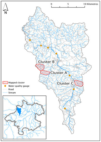 Getting back to zero-order catchments, though, and assuming that the sizes of those (parts) showing a certain property and those not showing a certain property average out in a sampling cluster (i.e., small sub-catchment in this case), this issue can probably be neglected, as the weights stay the same in both cases. This would even allow for a geostatistical approach, interpolating ratios between clusters [64]. The total number of affected units and their associated areas or pollutant loads could then be estimated with the help of auxiliary data.