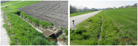 As a result of a field mapping campaign in a catchment in north-western Switzerland, Bug [29] reports that storm drains occur mainly at asphalt roads leading across a hillside and in areas with flow convergence. However, for another catchment in the German federal state of Lower Saxony, he depicts a dense network of ditches but no storm drains at all. This indicates that there exist different traditions in implementing agricultural and civil engineering measures.