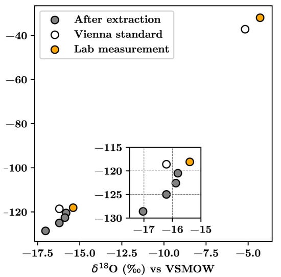 Comparison of isotopic signatures for laboratory measurements and for extracted water.