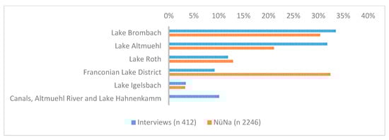 Distribution in percent of coded locations within the interview and NüNa data (Canals, Altmuehl River and Lake Hahnenkamm only coded in Interview data).