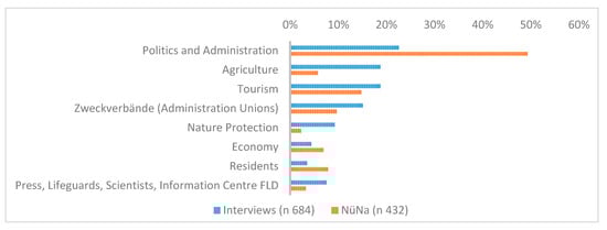 Distribution in percent of directly mentioned stakeholders in the interview and NüNa data.