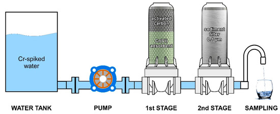 Simplified sketch of the point-of-use household filtering system loaded with the developed adsorbent for the removal of Cr(VI) from water.