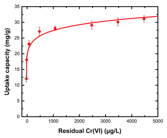 Uptake isotherm for Cr(VI) in natural-like water at equilibrium pH 7.