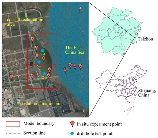 The coastal reclamation soil from the seabed sediment has a high salinity of more than 10% [1]. Salt in the dredger filling sediment is gradually released due to the salinity gradient and its advection–dispersion across the sediment–water interface, which can cause deterioration of underground and surface freshwater [2,3]. However, as a landscape and an area of human living, it is necessary to control the salinity of freshwater resources in this area out of consideration of ecology [4]. Generally, the control index of freshwater salinity is 1 g/L for a human-living area [5]. Therefore, the prediction of salt release from sediment to water is important to control surface water salinization in coastal reclamation areas. The main influence factor on lake water quality is salt release from the dredging soil with high salinity at the bottom of lake, where the permeability of sediment soil is very small [6]. Due to these key issues, exploring the salt-release process across the sediment–water interface in dredger fill with low permeability and performing optimized engineering design to control the salt content of lake water present a scientific challenge.