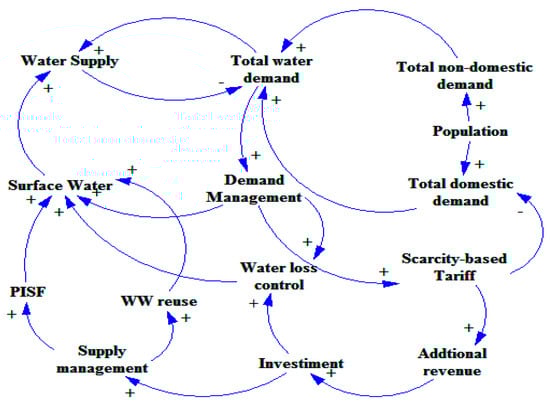 Thus, the interconnected components and complex behavior of the system for urban water systems can be acknowledged with the SD method [46].