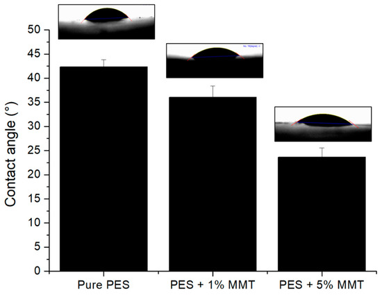 3.1. Effect of Clay on Membrane Hydrophilicity