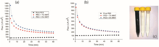- Daraei, P.; Ghaemi, N. Synergistic effect of Cloisite 15A and 30B nanofillers on the characteristics of nanocomposite polyethersulfone membrane. Appl. Clay Sci. 2019, 172, 96–105. [Google Scholar] [CrossRef]