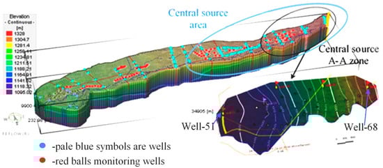 In the next chapter, this problem is considered only for domestic consumption in the central source area of the Ulaanbaatar aquifer. A finite element subsurface FLOW (FEFLOW) simulation was taken in the upper and central source areas of the A zone, where there are only 23 wells for water supply; see Figure 3.