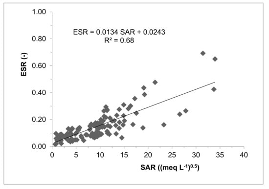 Exchangeable sodium ratio (ESR) as a function of sodium adsorption ratio (SAR).