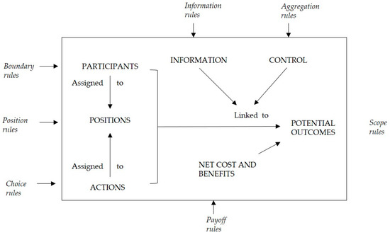 48. Crawford, S.E.; Ostrom, E. A Grammar of institutions. Am. Polit. Sci. Rev. 1995, 89, 582–600. [Google Scholar] [CrossRef]