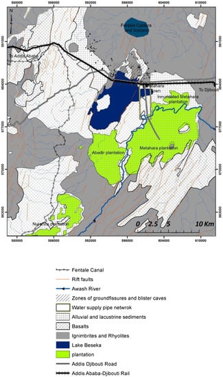 - Asfaw, L. Environmental hazard from fissures in the Main Ethiopian Rift. J. Afr. Earth Sci. 1998, 27, 481–490. [Google Scholar] [CrossRef]