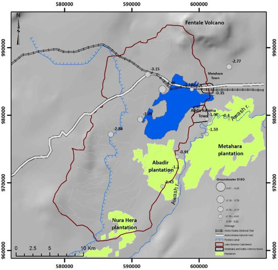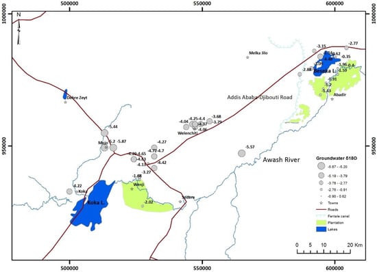 Spatial variation in δ18O of groundwaters around Lake Beseka.