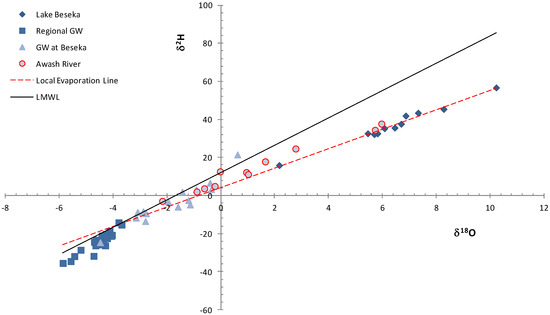 Groundwater outflow is already detected downstream of Lake Beseka from the spatial plot of δ18O in groundwaters. The waters downstream (Figure 4) show enrichment in δ18O as a result of mixing of the regional groundwater with groundwater leakage from the lake.