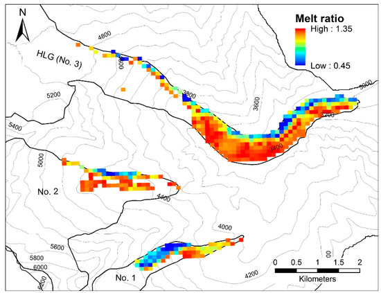 - Zhang, Y.; Fujita, K.; Liu, S.; Liu, Q.; Nuimura, T. Distribution of debris thickness and its effect on ice melt at Hailuogou Glacier, southeastern Tibetan Plateau, using in situ surveys and ASTER imagery. J. Glaciol. 2011, 57, 1147–1157. [Google Scholar] [CrossRef]