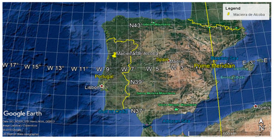 The study was carried out in the Macieira de Alcôba experimental watershed, of 96 ha, located at an altitude of 470 m asl in the Caramulo mountain range of north-central Portugal (Figure 1). The climate can be classified as humid Mediterranean (Csb in the Koppen-Geiger classification) with annual precipitations ranging from 818 to 1294 mm (Pousadas rainfall station). About 70% of the precipitation falls during autumn and winter. The average air temperature in winter is 8 °C, while that in summer is 17 °C. Soils are shallow, mostly Luvisols and Cambisols, overlaying moderately impermeable bedrock of schist and granite [15,19]. The Southern part of the watershed contains the village surrounded by terraced agricultural fields with a rotation of maize in summer and pasture in winter, irrigated year-round with the “águas da lima” system [19]. Until the 1930s, the watershed was mainly occupied by agricultural fields on terraces and by shrublands on the steepest slopes; from the 1930s to 1970s, there was a large-scale afforestation of shrublands and part of the agricultural lands with Maritime Pine (Pinus pinaster); from the 1970s to present, afforestation with eucalypt (Eucalyptus globulus) occurred [36]. Around the village and agricultural area, the forest is present on slopes steeper than 5%. With a reliable map of burnt areas starting in the mid-1970s, major fires have affected the region about once per decade [37].