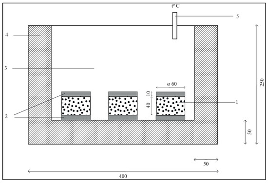 The experiments took place under different temperatures; −2, −3, −5, and −11 °C. After 4 days, materials were pulled out, weighted, and dried at 105 °C for 24 h to calculate the water content by weight. Each water content corresponded to the unfrozen water content at each experimental temperature. Every material was tested in triplicates at each temperature.