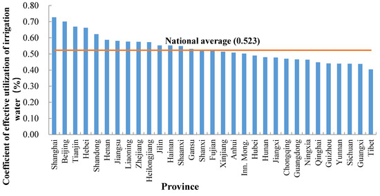 Coefficient of effective utilization of irrigation water of Chinese provinces in 2013.