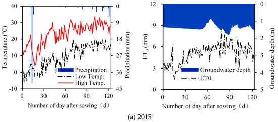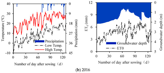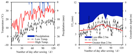 - Wang, X.H.; Hou, H.B. The influence of shallow groundwater on crops growth laws. J. Irrig. Drain. 2006, 25, 13–16. (In Chinese) [Google Scholar]