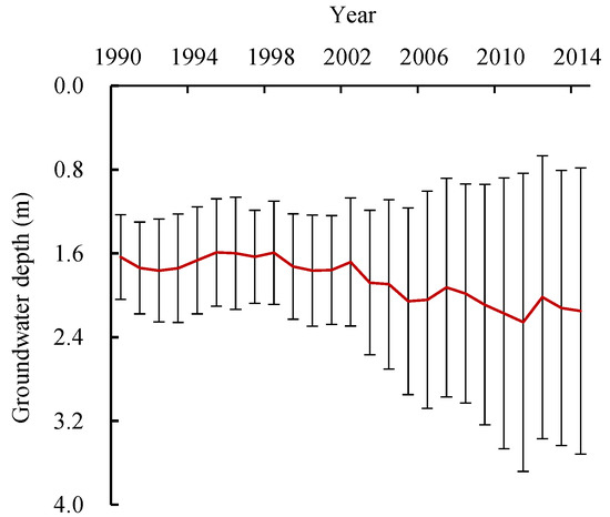 - Zhao, S.Z.; Kong, F.J.; Wang, X.K.; Li, S.B.; Meng, K.W. Confirming of critical depth of groundwater level and discussion on it’s significance-take Hetao Irrigation Area for example. J. Inn. Mong. Agric. Univ. 2008, 29, 164–167. (In Chinese) [Google Scholar]