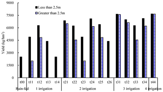 3.3. Yield of Spring Wheat in Different Zones under Different Irrigation Schedules