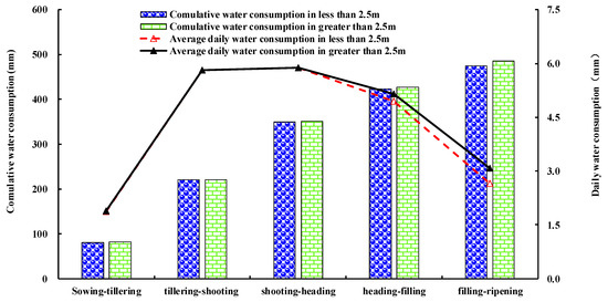 3.2. Water Consumption by Spring Wheat in Different Zones under Different Irrigation Schedules