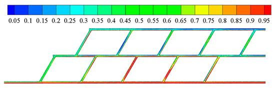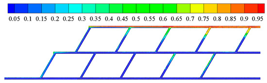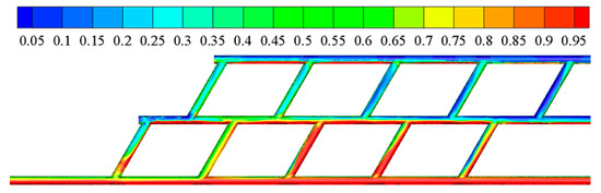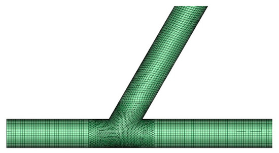 To improve the calculation accuracy, the grid is regionally generated, as shown in Figure 2. Due to the flow complexity in the T-junctions, compact tetrahedral cells are generated in T-junctions blocks, while hexahedral cells are produced in the other blocks by Cooper. The distortion rate of the grid is controlled within 0.8, and the calculation accuracy is within 10−3.
