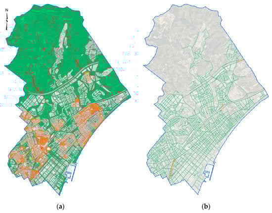Vulnerability map for Badalona municipality: (a) Pedestrians, and (b) vehicles.
