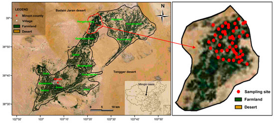 Location of sampling sites in Minqin oasis.