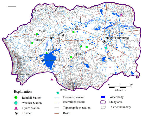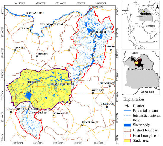 The authors would like to thank Bureau 10 of the Regional Groundwater Resources in Udon Thani Province; the Department of Groundwater Resources (DGR); the Ministry of Natural Resources and Environment and the Land Development Regional Office 5 Khon Kaen; the Land Development Department (LDD); and the Ministry of Agriculture and Cooperatives for supporting the project. We are also extremely grateful to the staff of the Royal Irrigation Department (RID) and the Thai Meteorological Department (TMD) for sharing hydrological and weather data.
