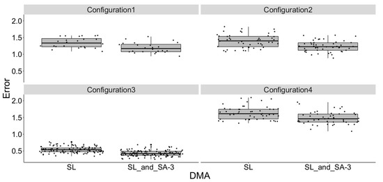 Prediction Mean Error (top ANN configuration) for DMA SL and for DMA combination SL + SA-3.