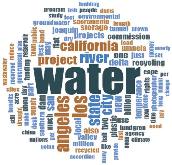 Table 2 and Table 3 present the main arguments of selected articles from the Los Angeles Times and the Orange County Register, respectively. Figure 2 and Figure 3 illustrating the language used in the context of potable water reuse can be found after the tables.