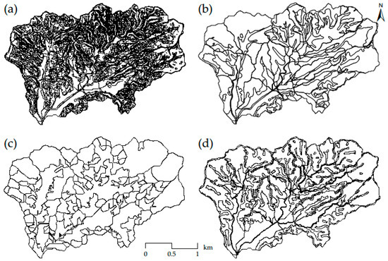 - Band, L.E. Spatial hydrography and landforms. In GIS: Management Issues and Applications; Longley, P., Goodchild, M., Maguire, D., Rhind, D., Eds.; John Wiley & Sons: Hoboken, NI, USA, 1999; pp. 527–542. [Google Scholar]