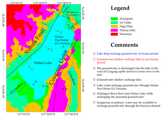 - The comprehensive analysis conducted for this study has demonstrated that Lake Hulun is recharged by groundwater during the non-frozen period and when the lakes freeze up discharges lake water into the surrounding groundwater through the fault zones that lie along both sides of the lake. The water cycles in these different periods also help guard against over-salinization. The hydrogeological conditions of the surrounding groundwater are influenced by the local climate, geology, geomorphology, geological structure, resulting in complicated and changeable recharge and discharge relationships between the lake’s surface water and the groundwater in the Lake Hulun Basin.