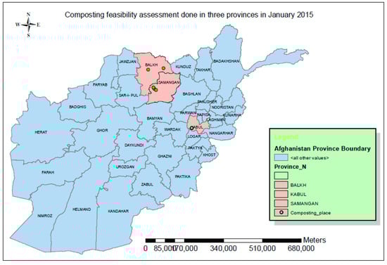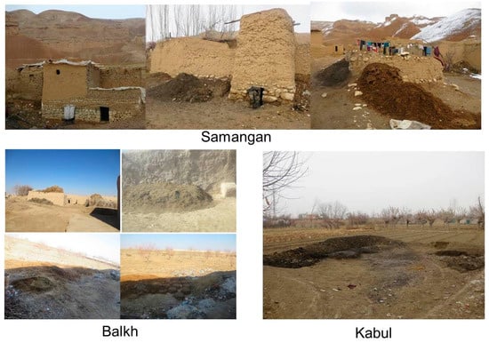 Afghanistan, the location of the current study, is facing a long-term humanitarian crisis and has made little progress in the field of sanitation from 1990 to 2015. Currently, only 32% of the population have access to proper sanitation, representing the world’s worst sanitation situation []. Nevertheless, the government of Afghanistan is committed to reaching its Sustainable Development Goals (SDGs) [] of which sanitation is an integral part. In Afghanistan, including urban centres, such as Kabul and Kandahar, it is common to apply human faeces from dry toilets, without treatment, directly to agricultural fields []. No systematic research exists that explores the current status of this traditional practice in either peri-urban and rural contexts. Furthermore, no evaluation of the efficiency, relevance or sustainability of this type of traditional closed-loop sanitation system (T-CLSS) exists. In response to this gap in the literature, the current study was conducted under Afghanistan’s programme intervention areas under Action Contre La Faim (ACF). The main objective was to examine the strengths, weaknesses, opportunities and threats (SWOT) inherent in the existing T-CLSS and to improve the design and planning for the future introduction of improved CLSS []. This study aims to improve the existing system in terms of increased safety by reducing risks involved in both human and environmental contexts. In addition, the study explores how T-CLSS can support productivity, markets and job creation in a local context. Finally, the authors seek to contribute to the discovery of sustainable and efficient solutions for excreta disposal and management in large urban centres.
