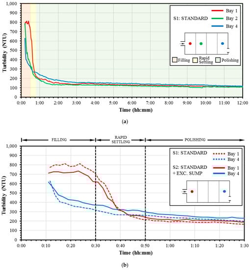 (a) S1 standard configuration turbidity results and (b) comparison of S1 and S2 treatments.